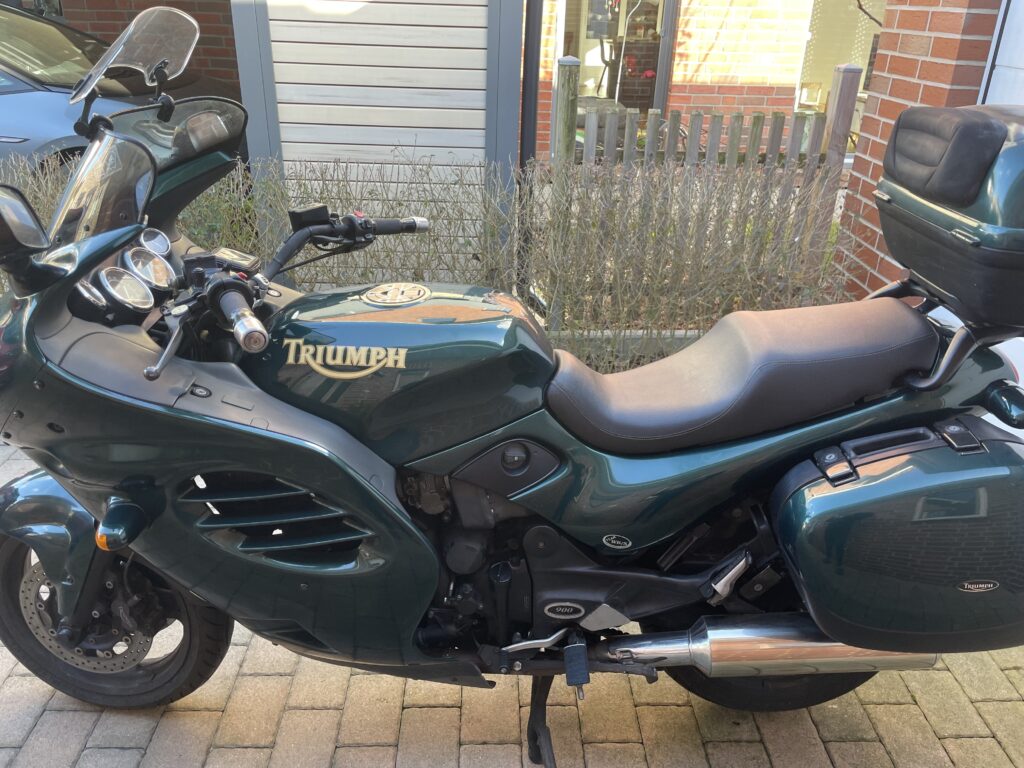 Nach mehr als 10 Jahren "Schönwetter Fahrzeug", möchte ich mich aus Zeitmangel von meiner gut erhaltenen Triumph Sports Trophy in klassischem British Racing Green trennen. Letzte Inspektion und HU im Okt. 2024 Hinweis: Hinweis zum Privatverkauf dieses Motorrades! Der Verkauf erfolgt unter Ausschluss jeglicher Gewährleistung. Rücknahme oder Umtausch sind ausgeschlossen.