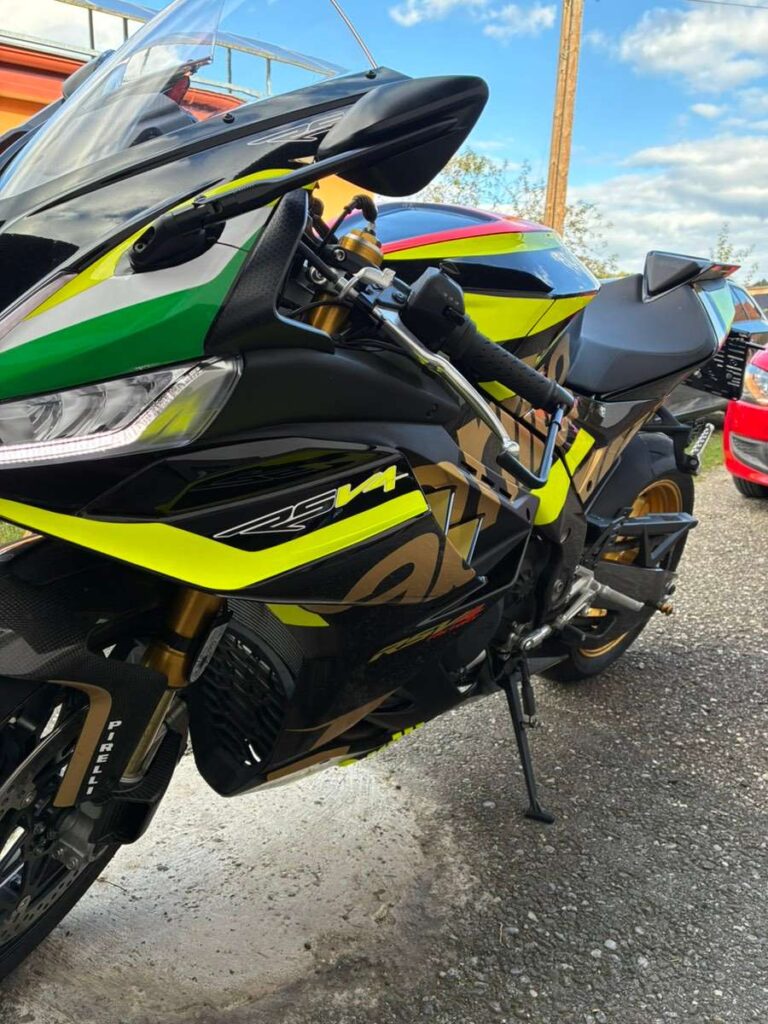 Zum Verkauf steht meine Neue Rsv4 Factory Ez 2025 mit 399km Sonderausstattung im Wert von über 10.000€ + Alle Original Teile dazu Voll Carbon Verkleidung Sc Komplettanlage Jegliche Rizoma Anbauteile Magnesium Leichtfelgen Bereifung Diablo Supercorsa Brembo Bremsanlage Tricolore sonder Folierung Quadlock pro Öhlins Fahrwerk voll elektrisch verstellbar Wheelie control Launch control Tempomat Street,Race und Sport Modus Elektrische Klappensteuerung Verschiedene Fahr und Race Modi Sprachsteuerung App steuerung Und Vieles mehr