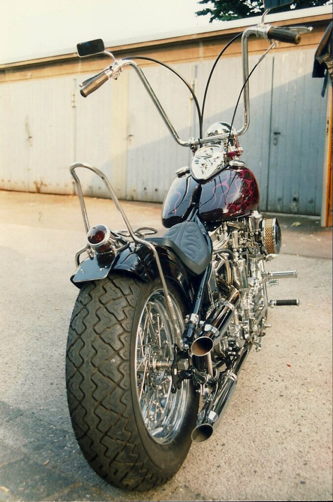 Harley Davidson frisco Style Chopper 60s Panhead BITTE ERST EIN MAL ALLES LESEN !! LESEN !!! :-) Bitte nur um "ernste Interessenten mit Kaufinteresse! und ein Anschreiben mit Namen wäre auch ganz nett! sorry und noch mal bitte nur mit kaufinteresse melden wäre ich dankbar ! Und erst mal alles Lesen ! Dann gibt es weniger Fragen Showwinner Anfang der 90s ! Bei CHROM & FLAMMEN beide Bikes ! Wurde 1989 neu aufgebaut - KOMPLETT !! Echter Harley-Davidson Wishbone Topzustand !!! Lange gesucht Orgi Wishbone Rahmen in den 80s ! Meistens abgesägt, geflext und nach geschweißt! Danke viel Schrott gesehen ! Und genug Kopien aus Schweden! Heute in dem Zustand sowas unmöglich noch zu finden meistens Nachbauten ! Vermessen ! Perfekt gerade ! Und nicht unten aufgesetzt noch alles vorhanden und gerade! Wichtig !!! Original Springergabel war noch in Ölpapier eingepackt - NOS ! Im Karton US Navy eingepackt Dann geschliffen poliert In 3 Schichten verchromt - Kostet ! Hochgezogene Krümmeranlage Neu dabei ! Dann weiter Panheat Motor Suche nichts gutes gefunden geschweißte undicht angeblich überholt danke reichte mir; meistens nur Müll angeboten ich wollte fahren nicht schrauben schnell gelernt !!! STD Motor, Neu HD rod ! STD Köpfe, nicht getunt, Nockenwelle Crane. Rest Neuteile Manley Revtec Crane u.s.w. LIMA USA Seitendeckel Motor org HD paisley muster gravur Chrom handmade 60s KEIN E-Starter nur Kick ! :-))))) Getriebe Neu ! Top HD Schaltwalze! SU Vergaser, neu in Chrome Primo Antrieb Z-Riemen Der Rest: besten Neuteile von 1989 CCI Räder Neue mit Timken Regelrollenlager Top 21Zoll 15 Zoll Heckteil - Handmade in VA ! Lackierung ist TOP ZUSTAND -war Teuer ! keine Kratzer !!!!! Tank muss innen gereinigt werden Gefahrener, garantiert originaler Kilometerstand: 5621 Meilen sind 9100 KM siehe Tacho bis Heute ! Ich würde sagen ist gerade mal eingefahren . Alles eingetragen ! TÜV abgelaufen, muss neu ! Alles eingetragen, auch Kennzeichen 240X130mm !!! Apehanger auch. Standgeräusch 102P eingetragen ! Hat keine Blinker !!!! Braucht die Nicht 1956 !!! Was muss gemacht werden: neue Reifen sind die ersten, neue Bremsbeläge Batterie neu Ölwechsel machen Vergaser Reinigung arbeiten Kein ABS, Elektrostarter, Katalysator ! ;-) Was für Kenner ! Starrrahmen und Apehanger, Bremsen: Trommel :-) Wurde sehr wenig gefahren !! Nur Sommer ! Ist KEIN Notverkauf ! ! Keine Probefahrt möglich !!! Tüv abgelaufen Rest: Bilder sprechen für sich KEIN INTERESSE an irgendwelchen Tauschs, noch Inzahlungnahme oder Ratenzahlungen, auch nicht an irgendwelchen Preisverhandlungen wo man eine Dax für bekommt ! so wie auf den Bildern ist alles TÜV eingetragen !