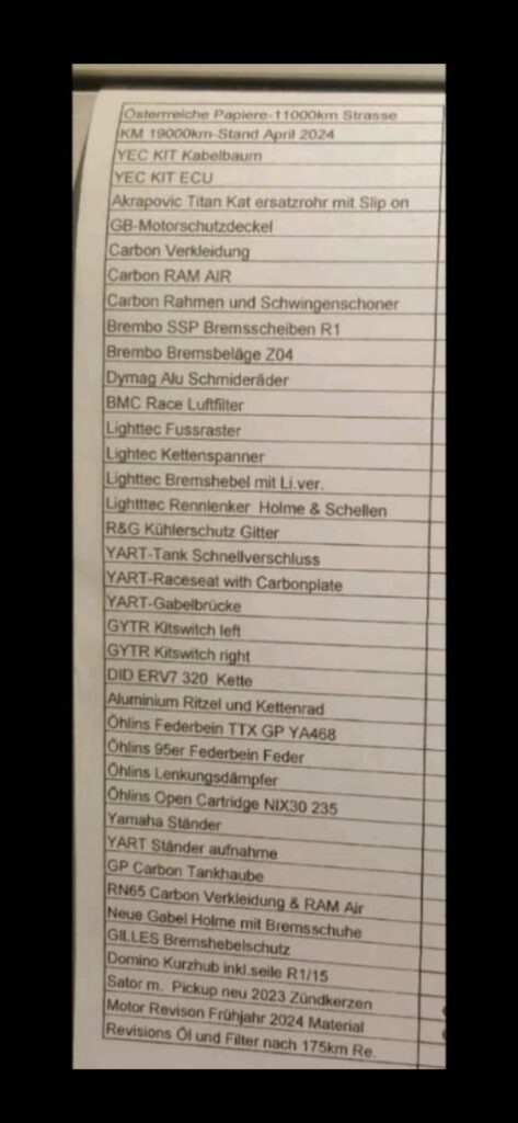Schöne sehr treue YART R1 RN32 zum veräussern! 11000 Strassen KM 7453 Track KM 2024 Motor Yamaha Revision -Full Service Viele nach Rennsasion 2023 verschleiss teile erneuert . Verschlissene Brembo Brems Scheiben wurden auf Neue Orginal R1 Brems Scheiben gewechselt 1Turn Frühjahr 2024 nach Revison Motor langsam eingefahren und frischer Ölwechsel und Filter. Seitdem nicht mehr bewegt! Detaillierte Beschreibung bitte zweites Foto durchlesen . Verkauf wegen neuanschaffung einer GYTR! Bei Interesse und fragen bitte einfach melden und nach Termin anschauen kommen und quatschen . Preis nach Sympathie und vorhandenem Rennfieber verhandelbar! Extra option €2000 Nagelneu- nie verwendet oder verbaut ! Akrapovic Track Day set für slip on "98"DB Auspuff Dämpfer Zwischen Rohr Titan Carbon -Auspuffhalter Kit
